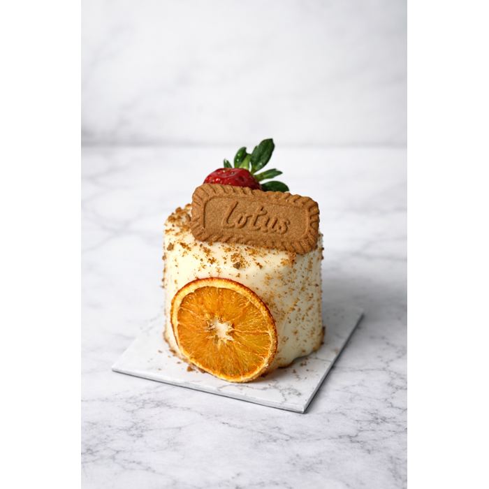 Muz, Çilek ve Lotus kreması. Beyaz pandispanya, beyaz krema.